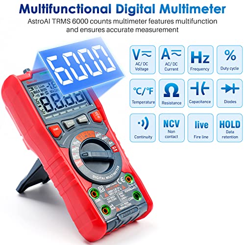 AstroAI Multimètre numérique, multimètres TRMS 6000 comptes manuels et télémétrie Automatique
