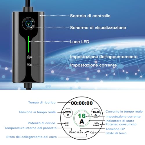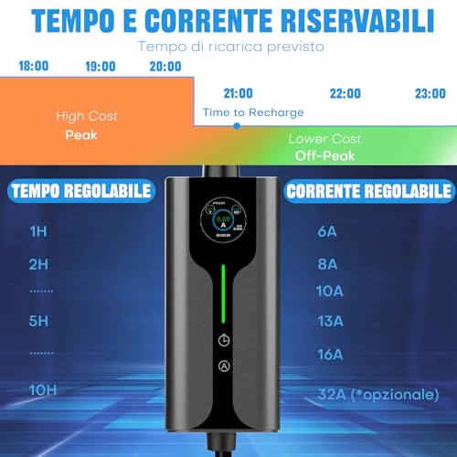 【Facile à utiliser】Conception portable : aucune installation requise (une prise Schuko standard suffit). Câble de 5 mètres pour une flexibilité maximale. Prend en charge la recharge programmée, il est possible de régler le démarrage de la recharge après 1 à 10 heures, la durée de recharge peut être sélectionnée entre 1 et 10 heures. Réduit les coûts de recharge domestique de 50 % en profitant des tarifs horaires réduits