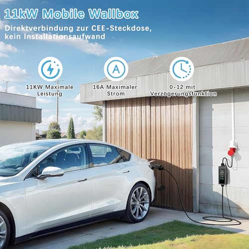 Intensité et temps de charge réglables : ajustez le courant de charge de 8A, 10A, 13A ou 16A et le délai de 1 à 12 heures pour une expérience de recharge personnalisée et pour éviter les coûts élevés pendant les heures de pointe. Doté d’une fonction minuterie pratique et d’un écran LCD permettant de surveiller l’état de charge, le temps, la consommation d’énergie et les coûts.