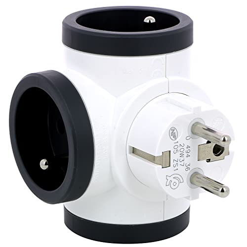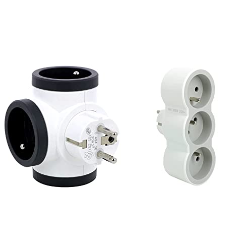 Legrand – Fiche multiprise rotative avec 3 prises latérales avec terre – blanc et gris foncé & Fiche multiprise avec 3 prises frontales avec terre – blanc et gris clair