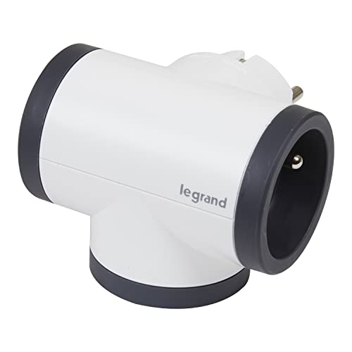 Legrand – Fiche multiprise rotative avec 3 Prises latérales avec Terre – Blanc et Gris foncé