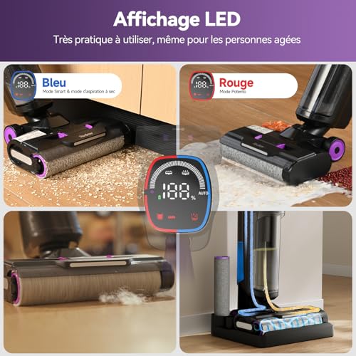 Redkey W15 Aspirateur Balai Laveur sans Fil, Balai aspirateur Laveur 3 en 1,Aspiration Puissant Eau et Poussière,5mm Simple Lamination,35min Longue Autonomie, LED écran Digital,Auto-Nettoyage