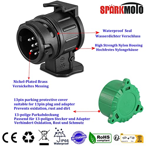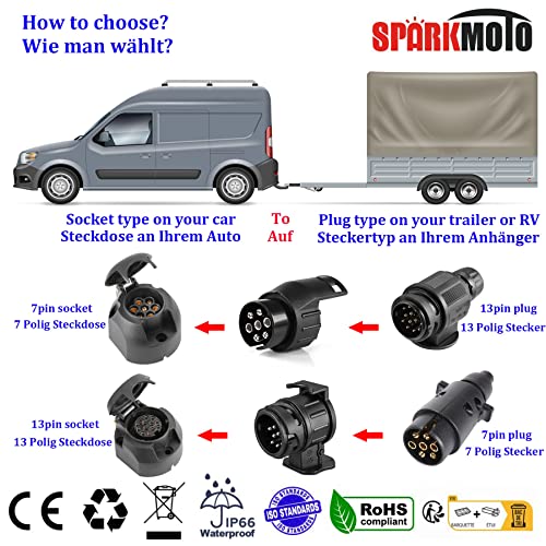 SPARKMOTO Adaptateur Prise Remorque 7 vers 13 Broches et Adaptateur 13 vers 7 Broches