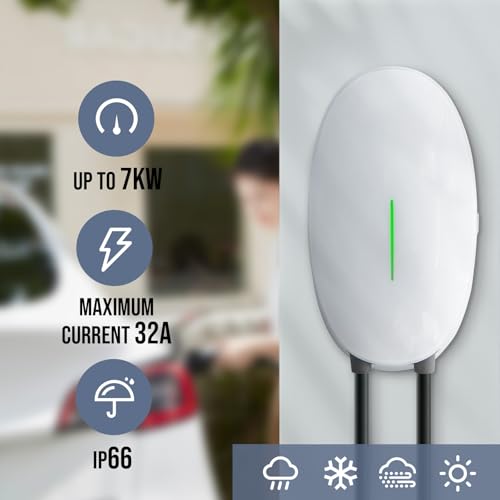 Teskee Cargador EV Tipo 2 Wallbox Home Smart EV Estación de carga Para automóviles Para Todos Los vehículos eléctricos y automóviles híbridos enchufables USO en exteriores e interiores